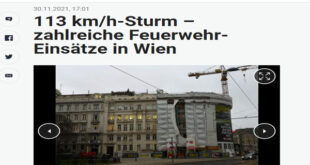 تعرضت العاصمة النمساوية ومناطق أخرى في النمسا أمس الثلاثاء لعاصفة شديدة تمثلت في هبوب رياح عاتية؛ مما تسبب في حدوث أكثر من 70 حالة طوارئ لرجال الأطفاء والخدمة المدنية ، بسبب العاصفة العنيفة التي وصلت سرعتها إلى أكثر من 113 كم / ساعة يوم الثلاثاء أمس واليوم الأربعاء. وطالت العاصفة مدن رئيسية أخرى بينها أيسن إشتاط ولينز وجراتس ، وقالت …