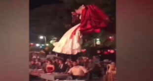 نشرت وسائل إعلام ورواد مواقع التواصل الاجتماعي، فيديو غريب لصعود عروسين في صندوق لودر وارتفاعه بهما أمتار في الهواء، قبل أن يقلبهما على طاولة الطعام أمام الضيوف. في المقطع، يمكن رؤية العريس والعروس جالسين في صندوق لودر يطوف بهماقبل أن يسقطهما على طاولة أمام ضيوف الذين ظهروا مذهولين يحدقون بهما بينما يستعد الزوجان لدخلة زفاف كبيرة. ومع ذلك، يتحول الأمر …