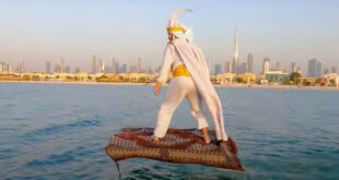 في مقطع فيديو مثير للدهشة فوجئ سكان مدينة دبي بالإمارات بشاب يجوب شوارع وشواطئ دبي مرتديًا زيًا يحاكي شخصية ديزني الشهيرة علاء الدين على متن ما يُشبه “البساط السحري”، تاركًا سكان المدينة في حيرة من أمرهم، ما حقيقته؟ وظهر الشاب وهو يتجول في منطقة سوق الذهب وأشهر شواطئ دبي ببساطه السحري قبل أن يكتشف سكان المدينة أنه شاب أمريكي من …