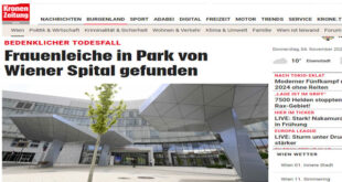 نشرت صحيفة كورونا النمساوية اليومية اليوم الخميس الموافق 4 من سبتمبر ، العثور على جثة أمرأة صباح اليوم في حديقة مستشفى الحى الواحد والعشرين بفيينا وأوضحت إدارة المستشفى ، أن المرأة تبلغ من العمر 31 عاماً مريضة محجوزة في قسم الطب النفسي بالمستشفى، ويشتبه في وجود طرف ثالث قام بالعملية وذكرت المستشفى أنه تم الكشف الأولي على جثمان المتوفية في …