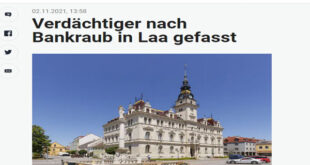 نشرت صحيفة النمسا اليوم بأن أحد البنوك في بلدة ميستلباخ التابعة لولاية النمسا السفى تعرض بنك للسرقة ظهر اليوم الثلاثاء الموافق 2 من سبتمبر 2021. وفي التفاصيل الأولية ، حسبما قال المتحدث باسم الشرطة في ولاية النمسا السفلى السيد رايموند شفايجرلهنر ، أن شخص ملثم قام بتهديد الموظفين بأداة تشبه البندقية وأجبر الموظفين على دفع النقود الموجودة بالبنك أليه ولاذا …