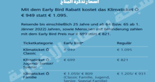 اقرأ المزيد »تذكرة المناخ بـ 3 يورو ستأخذك إلى أي مكان في النمسا.. ما غايتها؟