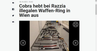 شنت قوات الشرطة الفييناوية، عدة حمالات أمنية لتفتيش بعض المنازل يوم السبت الماضى الموافق 16 من أكتوبرفي العاصمة النمساوية فيينا ، بعد تلقيها بلاغات بوجود أشخاص في حيازتهم أسلحة نارية متنوعة بشكل غير قانوني ومخدرات . التفاصيل ، قامت قوات الكوبرا النمساوية في نهاية الأسبوع الماضى بحملة واسعة النطاق على العديد من العقارات في فيينا ، بعد تلقى مكتب الشرطة …
