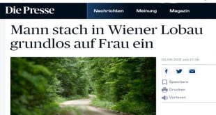 أصيبت أمرأة تبلغ من العمر 42 عامًا بطعنات وجروح طفيفة ، وأن حياتها ليست في خطر ، عندما أقدم رجل يركب دراجة هوائية ، اليوم الأثنين الموافق 2 من أغسطس 2021 ، على طعنها بدون أي أسباب كانت المرأة تلتقط صوراً في منطقة ” Josefsteg” بالحى الثانى والعشرين – فيينا ،توقف فجأة ونزل من على الدراجة وسحب السكين وهاجم المرأة. …