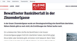 شهدت مدينة غراتس، عاصمة ولاية شتايرمارك، عصر اليوم الثلاثاء حالة استنفار أمني واسع، عقب تنفيذ عملية سطو مسلح استهدفت أحد الفروع المصرفية