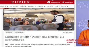 قرّرت الحطوط النمساوية الجوية ” Austria airline” التابعة للشركة الأم “لوفتهانزا”وهي تهتبر أكبر مجموعة للملاحة الجوية في أوروبا، التخلّي عن عبارة “سيداتي، سادتي” أثناء التوجّه بالحديث إلى الركّاب، حفاظا منها على مراعاة شعور المثليين جنسياً !!! وقال ناطق باسم الشركة لوكالة الأخبار الألمانية إن “الطواقم ملزمة باعتماد خطاب يتوجّه إلى الركاب على اختلافهم”، مؤكدا معلومات نشرتها الصحف النمساوية اليوم وأفادت …