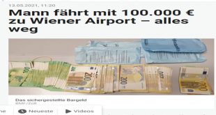 تشرت جريدة هويتة اليومية ، اليوم الخميس 13 من مايو ، أن سلطات الجمارك بمطار فيينا أحبطت يوم الجمعة الماضى ، محاولة لتهريب 100 ألف إيرو مع مساقر مصري مقيم في مدينة حراتس ومتجه إلى القاهرة وذكرت الصحيفة أن رجال الجمارك ضبطت المسافر بحوزته هذا المبلع داخل أربع مظاريف بنكية تخص بنك إشبار كاسة وموضوعة في حقيبة يد صغيرة لغرض …