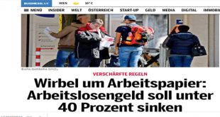 كشفت منظمة ” ÖVP-Wirtschaftsbund” أحد المنظمات الفرعية التابعة لحزب الشعب ÖVP عن أمكانية خفض نقود البطالة إلى 40 في المائة وأجبار العاطلين عن العمل لفترة طويلة لشغل الوظائف الشاغرة في جميع أنحاء النمسا ، والعمل فى أي عمل، وبأي ثمن ، للحد من نزيف البطالة التى تستنزف الدولة ، والذى يكمن في منافع البطالة . جاءت هذه الخطوات من خلال …
