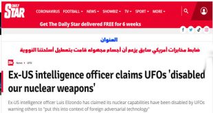 ادعى ضابط سابق بالمخابرات الأمريكية، أن “الأجسام الطائرة المجهولة” عطلت منشآت الأسلحة النووية الأمريكية، مطالبًا بوضع هذا الأمر في الحسبان في الصراع النووي مع الصين أو روسيا. وقال لويس إليزوندو المدير السابق للبرنامج المتقدم لتحديد التهديدات الفضائية (ATTIP) – وهي وحدة سرية في “البنتاجون” قامت بدراسة الأجسام الطائرة المجهولة بين عامي 2007 و 2012 – إن الحكومة الأمريكية تستعد للكشف …