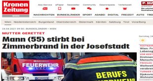 توفي شخص يبلغ من العمر 55 عاماّ مساءّ أمس الجمعة الموافق 23 من أبريل أثر حريق داخل المنزل في فيينا بالحى السادس عشر بشارع “Lerchenfelderstrasse ” بالرغم من محاولة ثلاثة ضباط شرطة إنقاذ الرجل من الخطر عند وصولهم إلى المكان مما جعل أثنين منهم يعانوا من استنشاق الدخان ونقلوا إلى المستشفى للعلاج ، حسبما أفاد المتحدث باسم شرطة فيينا السيد …