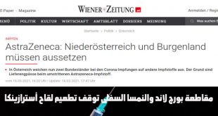 بعد تعليق 21 دوبة حول العالم أستخدام لقاح “AstraZeneca” في التطعيم قررت مقاطعة بورغنلاند النمساوية ومقاطعة النمسا السفلى تعليق التطعيم بللقاح، أسترازينكا، لمدة أسبوعين، في انتظار قرار لجنة الأدوية للإتحاد الأوروبي بشأن هذا اللقاح المثير للجدل في الفترة الأخيرة وكانت التشيك وكوريا الجنوبية وألمانيا وإيطاليا وفرنسا والعديد من دول العالم قد انضمت إلى الأخرين في تعليق التطعيم بلقاح أسترازينكا، بعد …