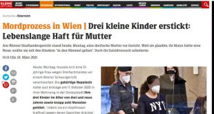 حكم على الأم النيبالية ذو 31 عاماً بالسجن مدى الحياة، قابل للطعن، لخنق ابنتيها البالغتين من العمر ثلاث سنوات وتسعة أعوام وابنها البالغ من العمر ثمانية أشهر بوسادة أثناء نومهم في 17 من أكتوبر 2020 في شقتها في Donaustadt – الحي 22 في فيينا، وقالت الأم اليوم الاثنين، “أردت أن أذهب إلى الجنة مع الأطفال”. فيما يتعلق بالدافع، صرحت الجانية …