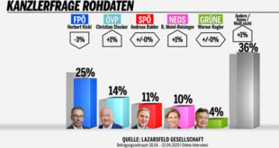 فيينا – شبكة رمضان الإخبارية أكثر من عام مضى على الانتخابات الوطنية الأخيرة في النمسا، واقتربت الحكومة الثلاثية (ÖVP، SPÖ، Neos) من إكمال عامها الأول في السلطة، إلا أن دراسة جامعة غراتس حول تنفيذ الوعود الانتخابية تكشف أن 14% فقط من هذه الوعود تم تنفيذها بالكامل، بينما لم يتم تنفيذ 81% منها بعد. الأداء حسب الحزب ÖVP تتصدر التنفيذ بنسبة …