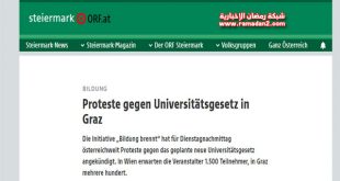 تشهد الساحة الرئيسية لمدينة جراتس – ثاني أكبر مدن النمسا – اليوم، تظاهرة طلابية ضخمة، للاحتجاج على تعديل “قانون الجامعة” الجديد المثير للجدل. وتتزامن التظاهرة التي دعت لها حركة (Education Burns) الطلابية المعنية بأمور الطلبة الجامعيين، مع تظاهرات أخري في جميع المدن النمساوية، رفضًا للقانون، الذي يقضي بزيادة الرسوم الدراسية في الجامعات النمساوية بنسبة كبيرة، ووضع عدة لوائح قانونية لاتصب في مصلحة الطلبة، مما …