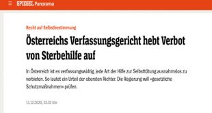 قضت المحكمة الدستورية في النمسا يوم أمس الجمعة الموافق 11 من ديسمبر 2020 ، برفع الحظر الذي فرضته البلاد على انتحار المرضى بمساعدة آخرين. ومع ذلك، أكدت المحكمة العليا أن قتل شخص بناء على طلبه أو طلبها سيظل غير قانوني. وقد طلب العديد من المواطنين من القضاة إلغاء القواعد الحالية. ومن بينهم رجل يبلغ من العمر 56 عاماً طريح الفراش …