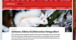 التقط المصور النمساوي Manfred Hesch من بلدة Hof في منطقة Flachgau – سالزبورغ صوراً نادرة لسنجاب أبيض أمهق، وهي حالة بيولوجية