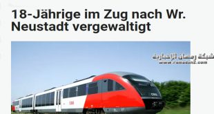 تعرضت فتاة نمساوية اليوم تبلغ من العمر 18 عام للأعتصاب داخل القطار ، أثناء رحلتها القادمة من ” Ebenfurth” والمتجهه إلى محطة ” Wiener Neustadt” في النمسا وقع الحادث اليوم عندما دفهها رجل مجهول بقوة إلى داخل المرحاض الخاص بالقطار واستمر المتهم لأكثر من 20 دقيقة، يمارس الجنس مع ضحيته.. وفقا لما نشرته صحيفة هويتة النمساوية تم إبلاغ الشرطة من …