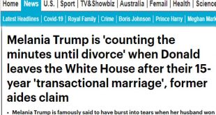 زعمت تقارير صحيفة بأن زوجة الرئيس الأمريكي ميلانيا ترامب، تحضر نفسها للانفصال عن زوجها وطلب الطلاق منه، وأنها تعد اللحظات والأيام المتبقية له في الرئاسة حتى تتركه بعد ما ضاقت به ذرعًا، وفق ما أوردت صحيفة ديلي ميل البريطانية. اعتمدت الصحيفة على مشاهدات خاصة بها، قالت فيها إن ميلانيا مرت فترات سيئة مع دونالد ترامب، وأنها لم تعد تطيقه. وقالت …