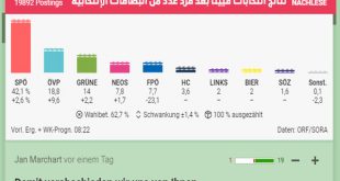 تصدر الحزب الاشتراكي النمساوي “SPÖ” المرتبة الاولى في السباق الانتخابي، الذى أجرى يوم الأحد الماضى 11 من أكتوبر بنسبة 43,09% ولا يحتاج إلى تشكيل الحكومة المحلية للعاصمة النمساوية فيينا إلا مع أحد الأحزاب الأخرى. واعتبر مهاجرون ومسلمون نمساويون في العاصمة فيينا أن الميزة التي تجعلهم في متابعة لنتائج الانتخابات كانت أن الاشتراكيين أو الخضر لا يعادون المسلمين، ولذلك دعموهم فكانت …