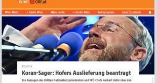 طالب النائب العام النمساوى اليوم الأثنين الموافق 28 من سبتمبر 2020 ،مجلس النواب الإتحادى النمساوى ، رفع الحصانة البرلمانية عن عضو مجلس النواب وزعيم حزب الحرية اليمينى المتشدد السيد نوربرت هوفر، للتحقيق معه ، بسبب تصريحاته المسيئة للقرأن الكريم أثناء محمع أنتخابى، فى سوق «فيكتور أدلر ماركت» بالحى العاشر في فيينا ، في شهر يونيو الماضى قال نوربرت هوفر أن …
