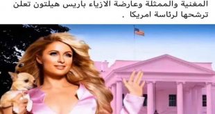 أعلنت الشخصية التلفزيونية والممثلة والمغنية الأمريكية، باريس هيلتون، ترشحها لخوض منافسات سباق الرئاسة الأمريكية المزمع عقده في نوفمبر/ تشرين الثاني 2020، وذلك عبر صفحاتها الرسمية بمواقع التواصل الاجتماعي، مشعلة جدلا حول إن كانت بالفعل تنوي القيام بذلك. https://twitter.com/ParisHilton/status/1280320055163490305?ref_src=twsrc%5Etfw%7Ctwcamp%5Etweetembed%7Ctwterm%5E1280320055163490305%7Ctwgr%5E&ref_url=https%3A%2F%2Farabic.cnn.com%2Fworld%2Farticle%2F2020%2F07%2F08%2Fparis-hilton-2020-elections ونشرت هيلتون صورا لها بتغريدات على صفحتها بتويتر مستلقية على المكتب الرئاسي في المكتب البيضاوي بالبيت الأبيض، قائلة في تعليق: “بعد تفكير …