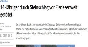 قالت الشرطة النمساوية اليوم أن شاب عراقي يبلغ من العمر 14 عامًا لقى مصرعة في انهيار جليدى فوق أحد الجبال النمساوية عندما كان يتسلق إلى واحد من أكبر الكهوف الجليدية في العالم ،بالقرب من منطقة تسمى Tennengebirge bei Werfen التابعة لـ أقليم Pongau في مقاطعة سالزبورج ، وإضابة أخر نمساوى يبلغ من العمر 19 عاماّ وأشارت الشرطة إلى إن الشاب …