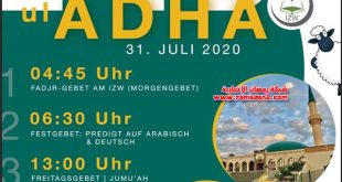 نشرت إدارة المركز الأسلامى في فيينا على موقعها الألكترونى موعد صلاة عيد الأضحى المبارك الموافق يوم الجمعة 31/7/ 2020 أول أيام عيد الأضحى فى تمام الساعة 6.30 حتى 6.50 ، حيث يؤم المصلين بالمسجد الشيخ محمد كليب أمام وخطيب المسجد ، كما تقام صلاة الجمعة في تمام الساعة الواحدة . ونظرا للإجراءات الأحترازية الخاصة بفيروس كورونا وحسب شروط السلطات الصحية …