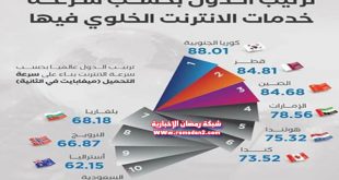 اقرأ المزيد »إنفوجراف – ترتيب الدول العربية حسب سرعة الأنترنت