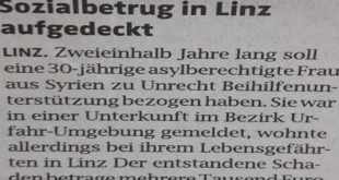 أمرأة تبلغ من العمر 30 عامًا من سوريا ، يحق لها اللجوء ، سجلت مكان سكتها خارج مدينة لينز عاصمة عاصمة مقاطعة النمسا العليا بمنطقة تسمى ” Urfahr” وعلية تلقيت من السلطة الإجتماعية في الفترة من نوفمبر 2016 إلى 10 أبريل 2019 زيادة دعم في المساعدات المادية لاحتياجات المعيشة والسكن. وفى أغسطس 2018 سافرت إلى العراق بدون أن تبلغ السلطات …