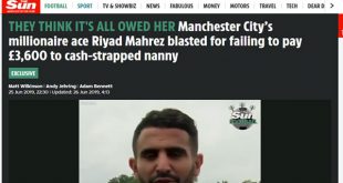 فجرت صحيفة “ذا صن” البريطانية مفاجأة مدوية بخصوص النجم الجزائري، رياض محرز، وذلك بسبب عدم دفعه لمستحقات مربية أطفاله، ما دفعها إلى رفع دعوى قضائية ضده. ورفعت المربية الفلبينية، كاتالينا، البالغة من العمر 52 سنة، دعوى قضائية تجاه محرز قبل أن يطالبه القاضي بدفع 3612 جنيها إسترلينيا. وكشفت الصحيفة البريطانية، عن أن “كاثي” كانت تتقاضى 12 جنيها إسترلينيا للساعة …