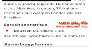 أثار إعلان متداول خاص بوظيفة فى مدينة زيوريخ السويسرية موجة من الجدل، بعدما اشتراط الشركة صاحبة الإعلان ، أنها لا ترغب فى جنسيات دول مثل كرواتيا وألبانيا وتركيا ، بجانب الدول التى تتميز بطقس حار . تسبب الإعلان في موجةً من الغضب والاستياء؛ بعدما أثارت إحدى السيدات ذات الأصول الأجنبية هذا الموضوع للإعلامي المحلى ، مما اضطرت شركة العمالة …