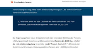 اقرأ المزيد »النمسا – زيادة المعاشات لعام 2026: رفع بنسبة 2.7% للأغلبية وتحديد حد أقصى للمعاشات المرتفعة