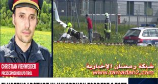 لقى شخصان مصرعهما في تحطم طائرة شراعية بمحرك بالقرب من مطار “إنسبروك” عاصمة ولاية تيرول الواقعة غرب النمسا، وفقاً للشرطة المحلية ، وشهود عيان بالقرب من مكان الحادث ووقع الحادث في منطقة المطار ويجهل حتى الأن هوية القتيلين الوحيدين في الطائرة، وفقاً لقيادة الشرطة في ولاية تيرول الاتحادية في بيان على موقعها الإلكتروني. وأضاف البيان: “الطائرة الصغيرة تحطمت تماماً”. …