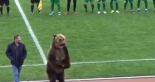 تداول نشطاء علي مواقع التواصل الاجتماعي مقطع فيديو لـ” دب”، يقبل حكما في مباراة بين فريقين روسيين في دوري الدرجة الثالثة. الدب الملقب بـ “تيم” والمدرَب على الاستعراض أمام الجماهير قبَّل الكرة وسلمها للحكم قبل انطلاق المباراة، ثم بدأ بالتصفيق للجماهير. لكن جمعيات الدفاع عن الحيوانات انتقدت بشدة هذا التصرف في الكرة الروسية. شاهد الفيديو.. …