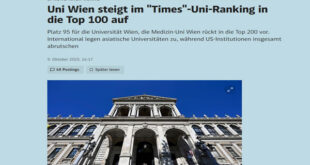 اقرأ المزيد »جامعة فيينا تدخل قائمة أفضل 100 جامعة عالمية لأول مرة