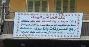 بلافتة كبيرة وضعها على شرفة منزله، حاول مواطن مصري استعادة مسروقات من شقته سرقها لصان، وعندما لم يستجيبا للنصيحة أو التهديد، أبلغ عنهما أجهزة الأمن. الواقعة الطريفة حدثت في محافظة أسيوط جنوب مصر، حيث فوجئ المارة بشارع “الحسن والحسين” بلافتة معلقة على شرفة أحد المنازل، جاء نصها كالتالي: “الولد الحرامي الهجام وأنت عارف نفسك أنت وشريكك، خمسة عشر عاما …