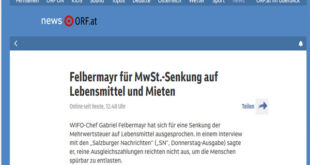 اقترح مدير المعهد النمساوي للبحوث الاقتصادية (WIFO)، غابرييل فيلبرماير، خفض ضريبة القيمة المضافة على المواد الغذائية والإيجارات بهدف تخفيف