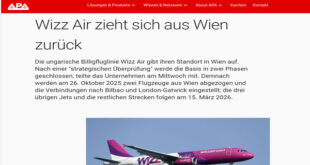 اقرأ المزيد »Wizz Air تغادر فيينا.. تداعيات على المسافرين والسوق المحلي