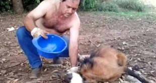 ظهر سائق شاحنة في مقطع فيديو مذهل وهو يحنو على ذئب متوحش سقط على الأرض إعياء من شدة العطش، ويسقيه المياه في فمه إلى أن تعافى وانطلق مختفيا. وشوهد الذئب وهو مكوم داخل صندوق الشاحنة التي كانت متوقفة على جانب الطريق في استراحة بموقع ظليل. واستغل الحيوان المتوحش استغل توقف الشاحنة وقفز إلى داخلها، ولجأ إلى أحد أركان صندوقها …