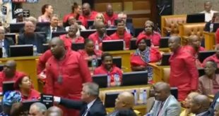شهد برلمان جنوب إفريقيا، حالة من الفوضى بعد أن هاجم زعيم حزب يساري متطرف رئيس البلاد جاكوب زوما وأجبره على إنهاء خطابه. ووفق ما أوردته وكالة “رويترز”، فقد كان زوما يلقي خطابه السنوي أمام النواب عندما قاطعه جوليوس ماليما زعيم حزب “مقاتلون من أجل الحرية” المتطرف. وقال ماليما: “إنه لا سبيل لتقويم هذا الرجل، إنه فاسد حتى النخاع وهذا …