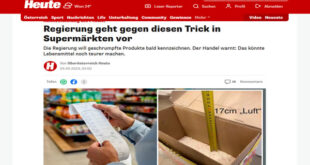 فيينا – شبكة رمضان الإخبارية تتجه الحكومة النمساوية لفرض إلزام قانوني بالكشف عن تقليص كميات المنتجات التي تباع بنفس السعر رغم تراجع محتواها، فيما يُعرف بظاهرة “Shrinkflation” – وهي كلمة مركبة من “shrink” (انكماش) و”inflation” (تضخم). هذا الأسلوب الذي تلجأ إليه شركات كبرى أثار في الأشهر الأخيرة موجة غضب واسعة بين المستهلكين. الجدل تفجّر بعد تقارير من جمعية حماية المستهلك …