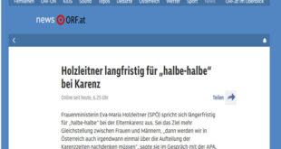 فيينا – شبكة رمضان الإخبارية في ظل جدل متصاعد حول قضايا المساواة والتمكين، أطلقت وزيرة شؤون المرأة النمساوية، إيفا-ماريا هولتسلايتنر (عن الحزب الاشتراكي SPÖ)، مواقف حازمة حملت مزيجًا من الواقعية السياسية والروح النسوية، مؤكدة أن الطريق نحو مساواة حقيقية بين الجنسين يمرّ عبر إعادة توزيع الأدوار داخل البيت، وتفكيك الضغوط المجتمعية على الأمهات والآباء على حدّ سواء. “نصف-نصف”: إجازة والدية …