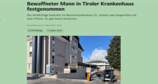 شهد مستشفى في ولاية تيرول صباح الاثنين حالة استنفار أمني واسعة، بعد ورود بلاغ عن وجود رجل مسلح داخل المبنى، ما استدعى تدخلاً عاجلاً من قوات