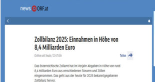 أعلن Zollamt Österreich عن تحقيق إيرادات قياسية بلغت نحو 8,4 مليار يورو خلال العام الماضي من مختلف الضرائب والرسوم الجمركية، وفق ما جاء في تقري