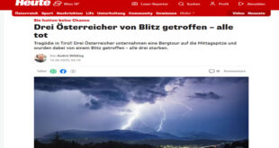 اقرأ المزيد »مأساة في جبال تيرول: البرق يضرب ثلاثة متسلقين ويودي بحياتهم