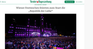 فيينا – أعلنت العاصمة النمساوية مساء الجمعة انطلاق فعاليات مهرجان فيينا للفنون (Wiener Festwochen) لهذا العام تحت شعار لافت ومعبّر: “جمهورية الحب”. في احتفال ضخم أقيم بساحة Rathausplatz، حضره نحو 48 ألف شخص بحسب المنظمين، امتزج الفن بالموقف السياسي، وتلاشت الحدود بين الأنواع والأساليب الفنية. الافتتاح كان عرضًا نابضًا بالحياة، جمع بين أسماء بارزة وأصوات متمردة. الفنانة الألمانية نيكول أعادت …