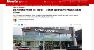 في مشهد بات يتكرر بشكل لافت في ولاية تيرول النمساوية، عادت ظاهرة السطو المسلح على البنوك لتثير قلق السكان وتطرح تساؤلات حول الأسباب والدوافع والجهوزية الأمنية. أحدث هذه الوقائع وقع في بلدة “فوغن” (Fügen) بمنطقة “تسيليلرتال” (Zillertal) التابعة لمقاطعة شفاز، حيث شهد أحد فروع بنك “Sparkasse” عملية سطو نفذها شاب نمساوي لم يتجاوز الثالثة والعشرين من العمر، بدافع قيل إنه …