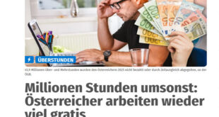 اقرأ المزيد »2,5 مليار يورو تضيع من أيدي العمال في النمسا.. 45,9 مليون ساعة عمل إضافية بلا أجر!