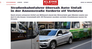 اقرأ المزيد »تصادم ثلاثي في قلب غراتس.. 11 مصاباً في حادث مروّع بين ترام وسيارة