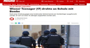كشفت تحقيقات شرطة إنسبروك عن تورّط مراهقة تلميذة بالصف الثامن في التحريض على تهديد بتفجير مدرسة متوسطة في حي برادل بتيرول. فقد قامت الفتاة (14 عاماً) بتحريض شاب في فيينا (17 عاماً) على الاتصال من كشك هاتفي بمركز العمليات بمدينة فيينا، وإبلاغهم بأن المدرسة “ستنقلب في غضون 48 ساعة”، وفق ما أوضح المحقق كريستوف كيرشماير لوكالة APA. وقبل يوم واحد …